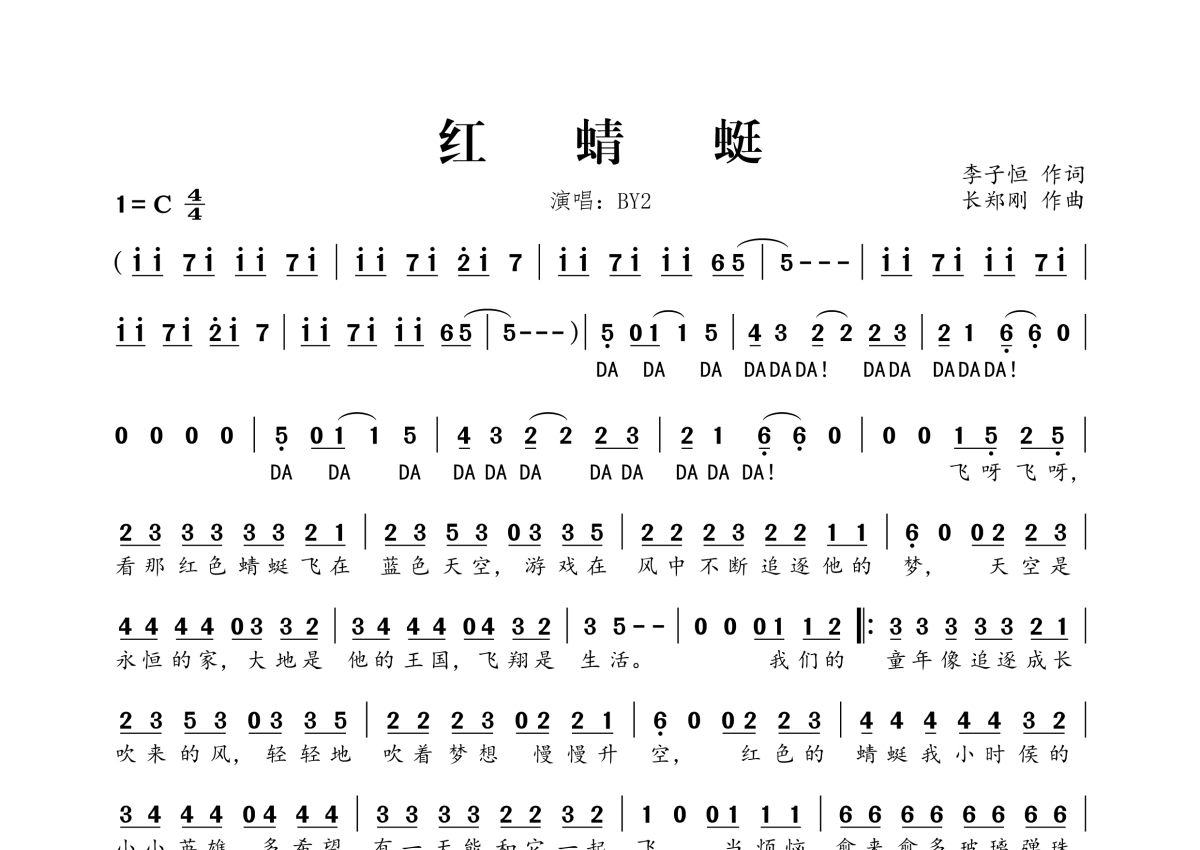 BY2《红蜻蜓》简谱