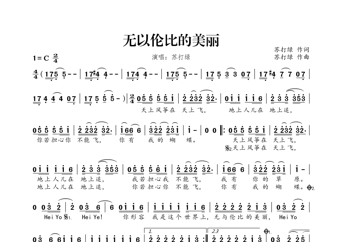 《无以伦比的美丽》是苏打绿演唱的一首歌曲,拍号为2/4拍,这份简谱共有一张高清图谱,图谱由 @桃李醉春风 编配上传。