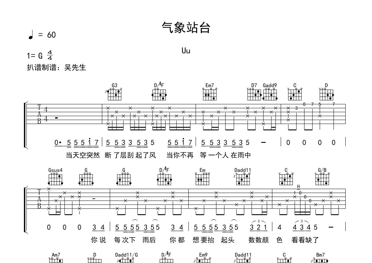 Uu《气象站台》吉他谱 - G调弹唱六线谱