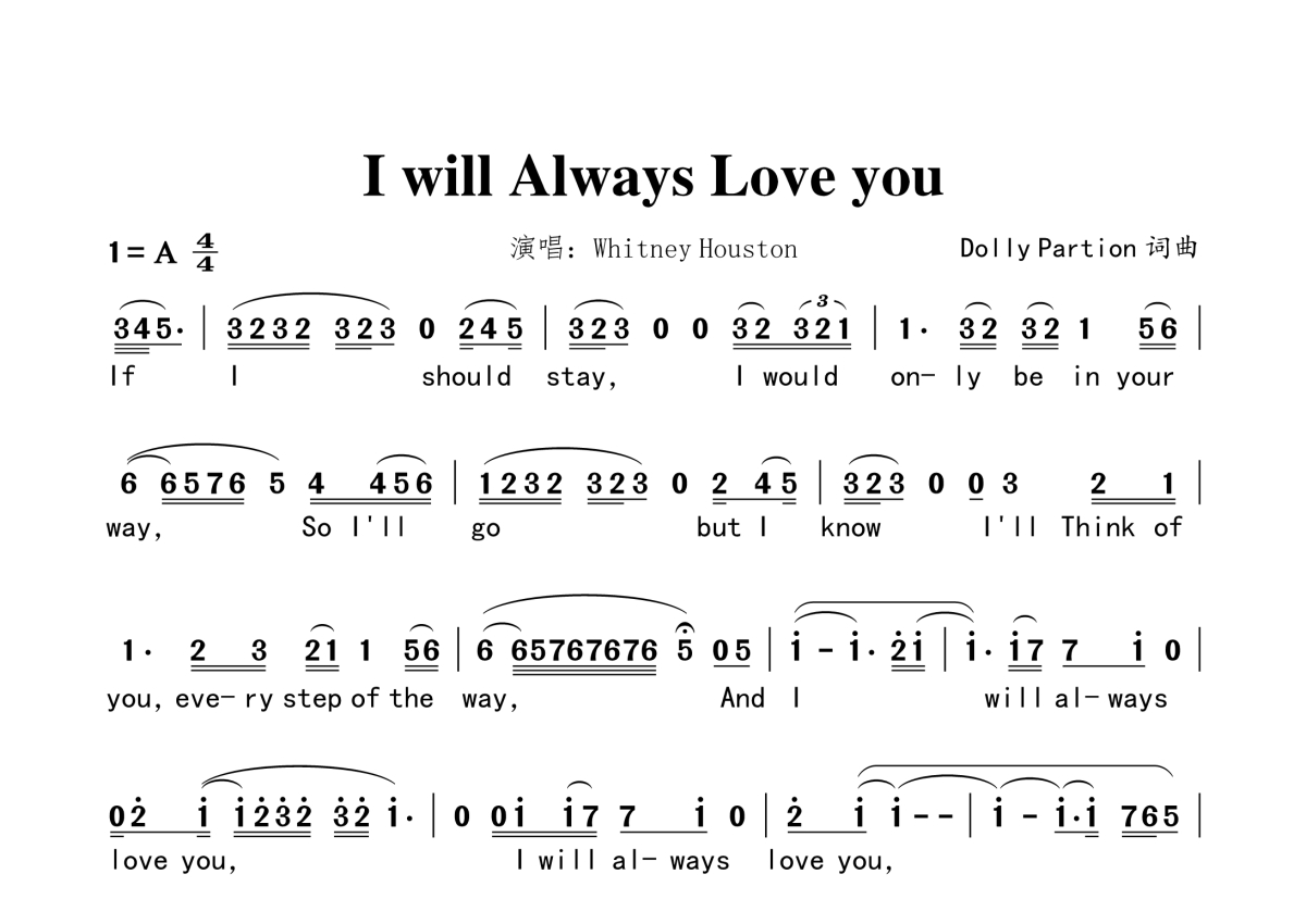 WhitneyHouston《I will Always Love you》简谱