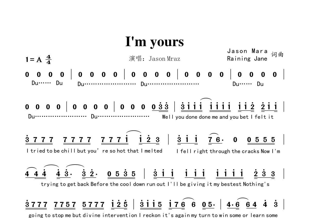 JasonMraz《I'm yours》简谱