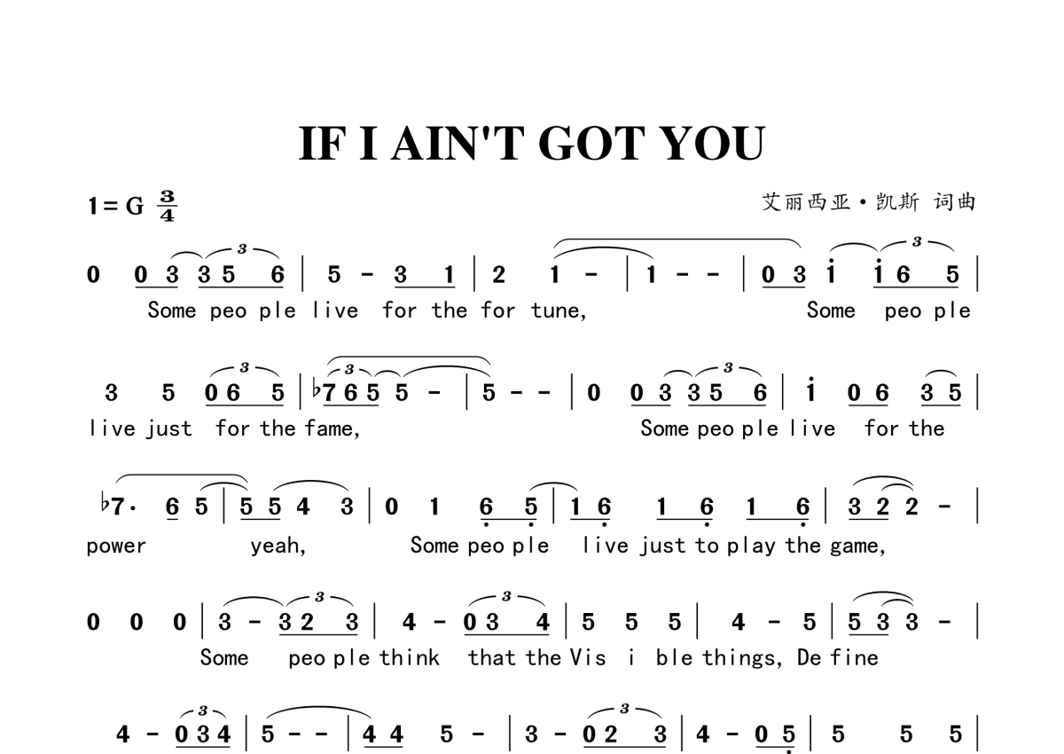 《IF I AIN'T GOT YOU》,拍号为3/4拍,这份简谱共有两张高清图谱,图谱由 @桃李醉春风 编配上传。