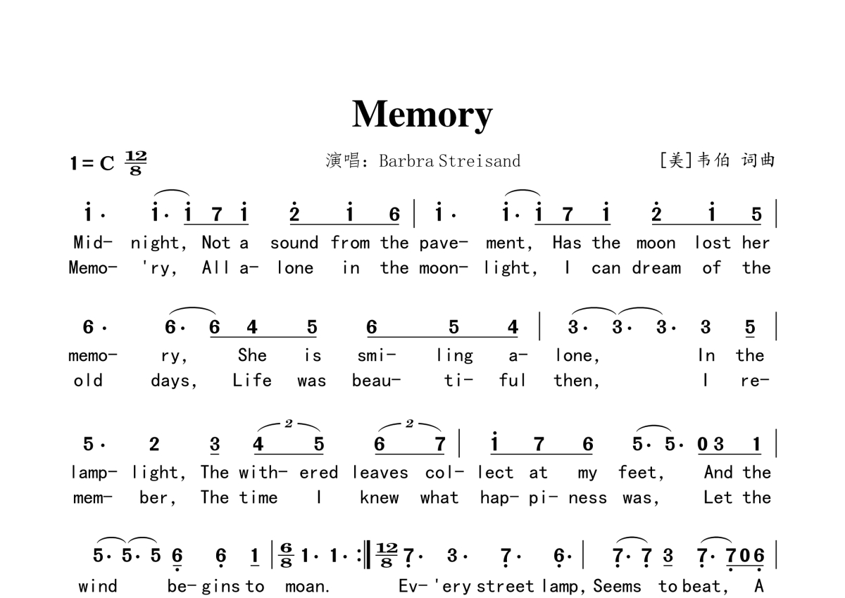 BarbraStreisand《Memory》简谱