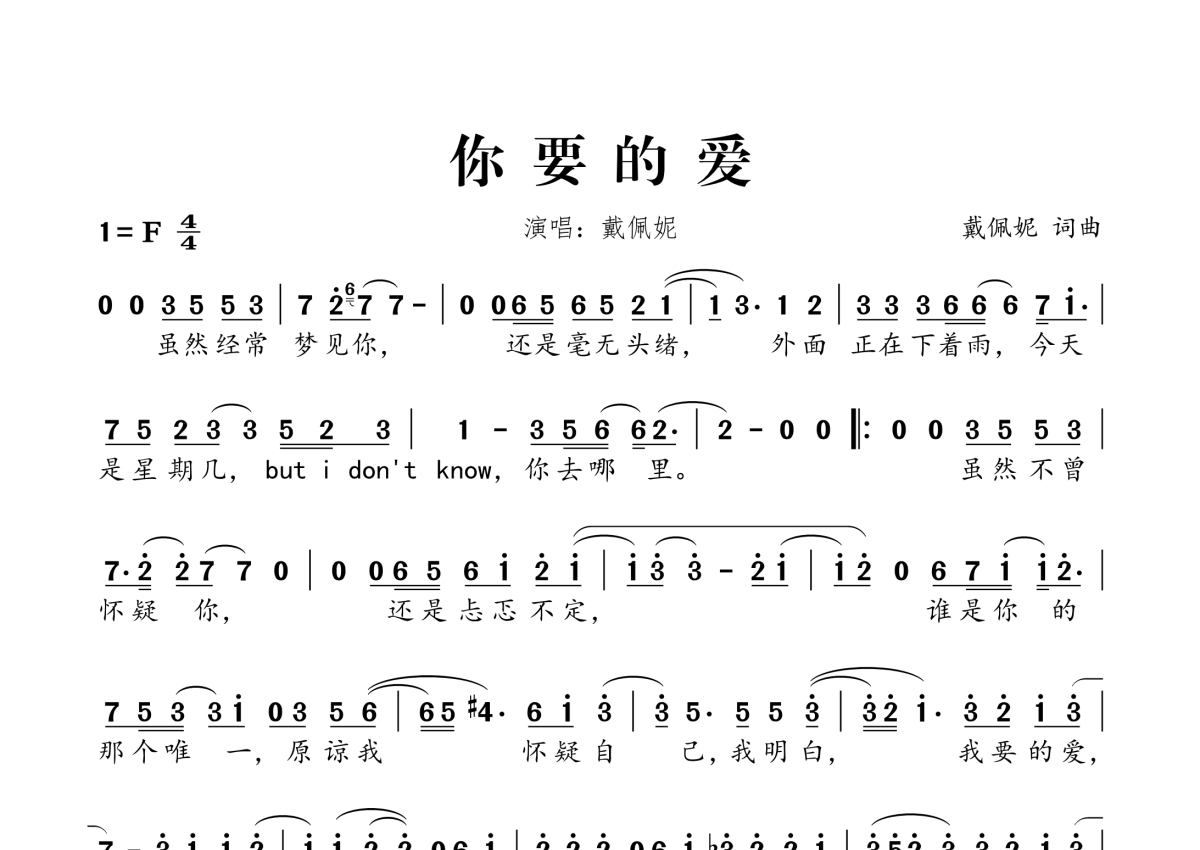 你要的爱简谱 - 戴佩妮演唱