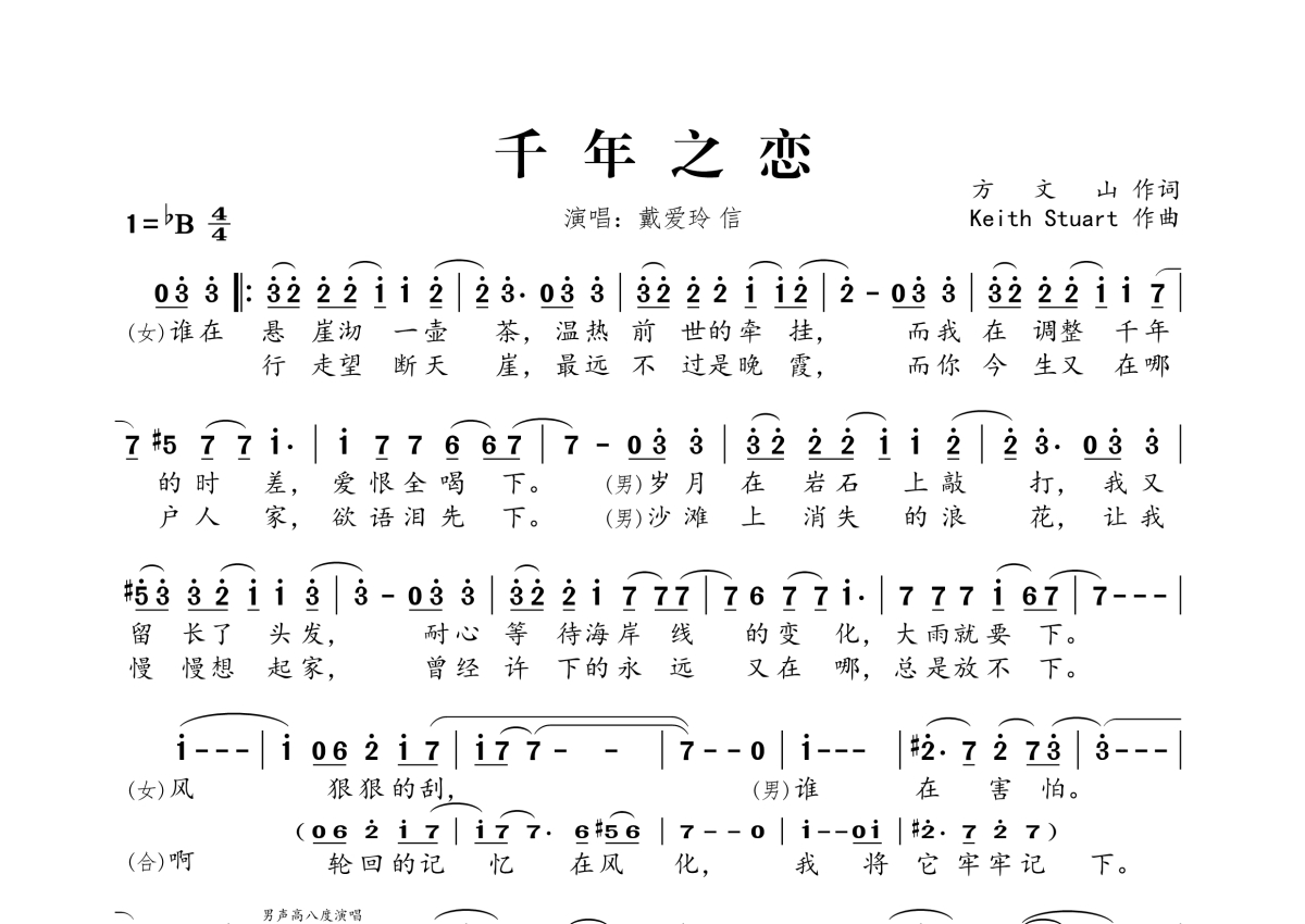 信乐团&戴爱玲《千年之恋》简谱
