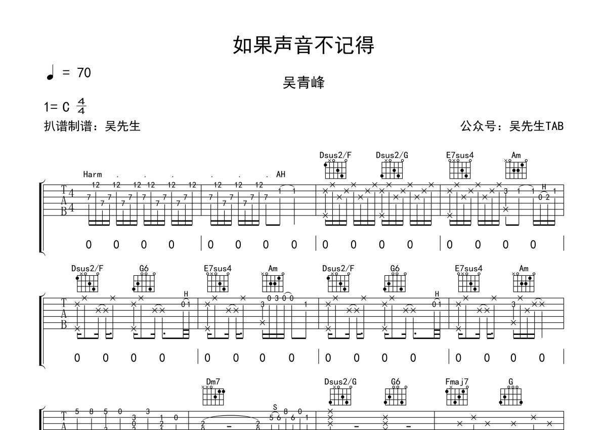 吴青峰《如果声音不记得》吉他谱 - C调弹唱六线谱