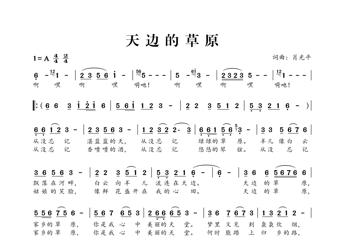《天边的草原》,拍号为4/4拍,这份简谱共有一张高清图谱,图谱由 @桃李醉春风 编配上传。