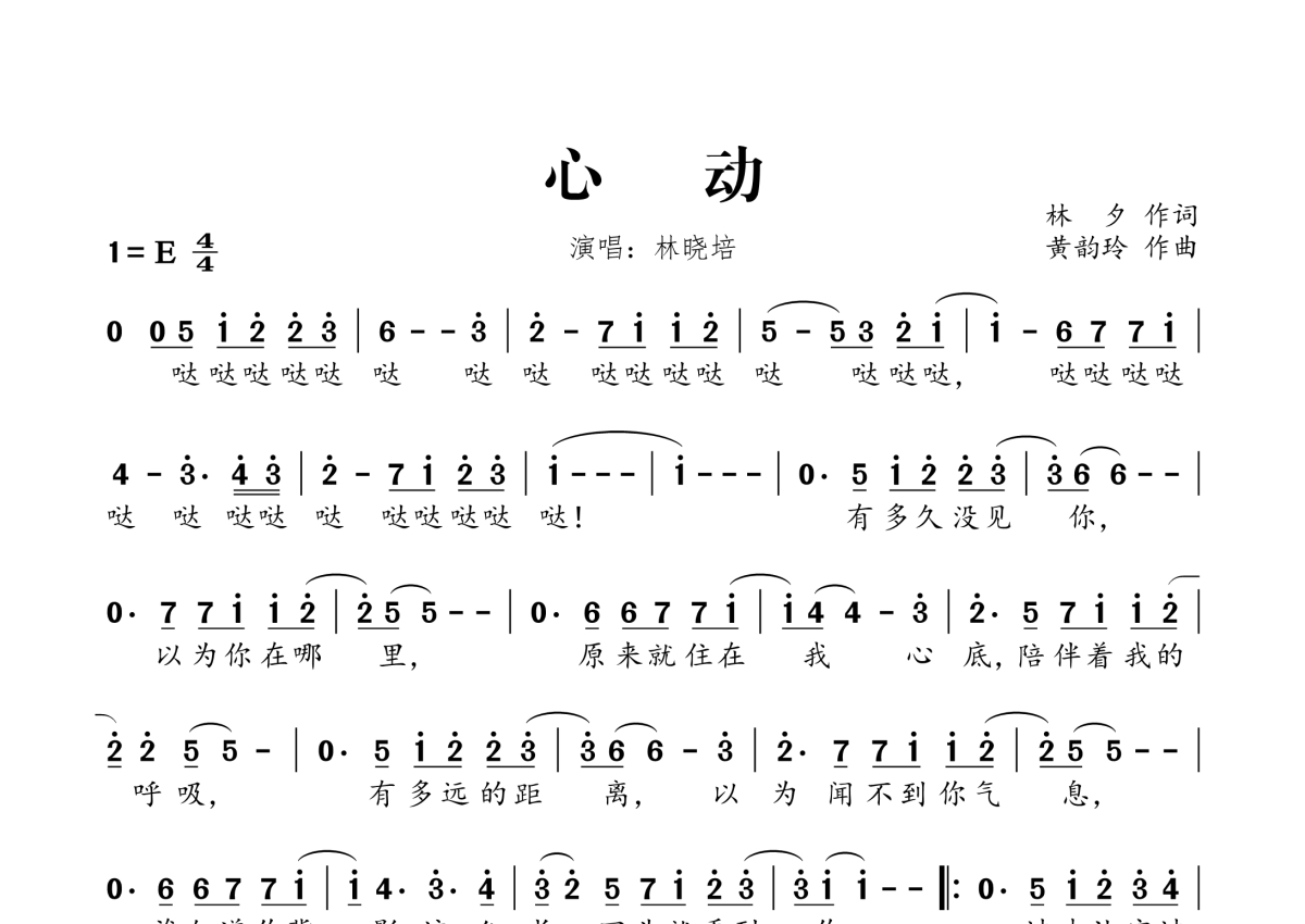 林晓培《心动》简谱
