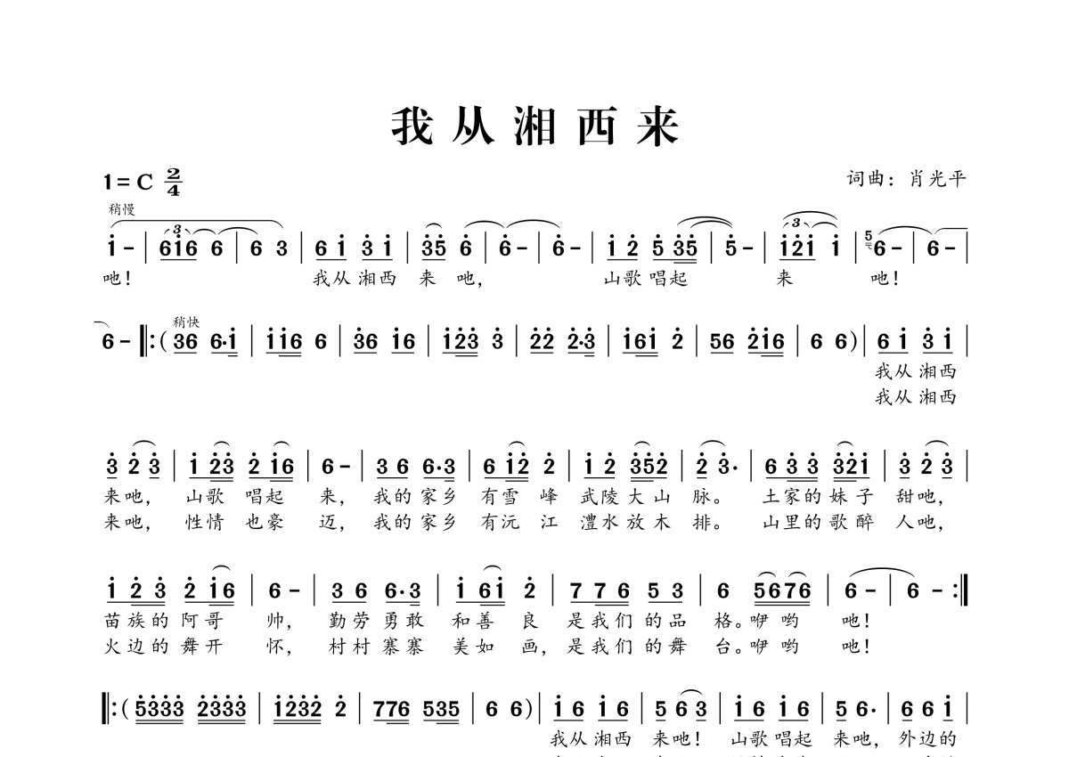 《我从湘西来》简谱