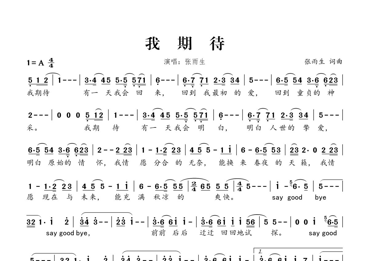 《我期待》是张雨生演唱的一首歌曲,拍号为4/4拍,这份简谱共有一张高清图谱,图谱由 @桃李醉春风 编配上传。