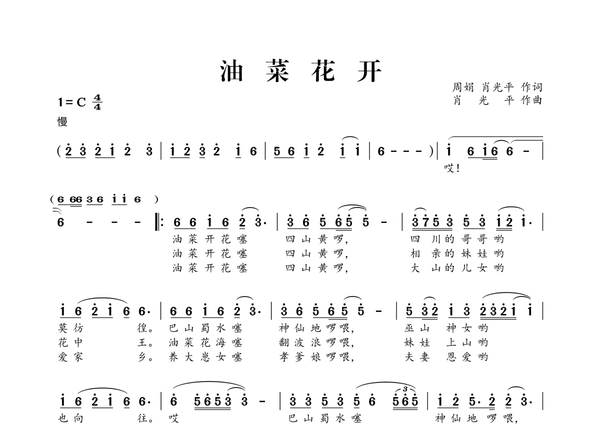 《油菜花开》简谱