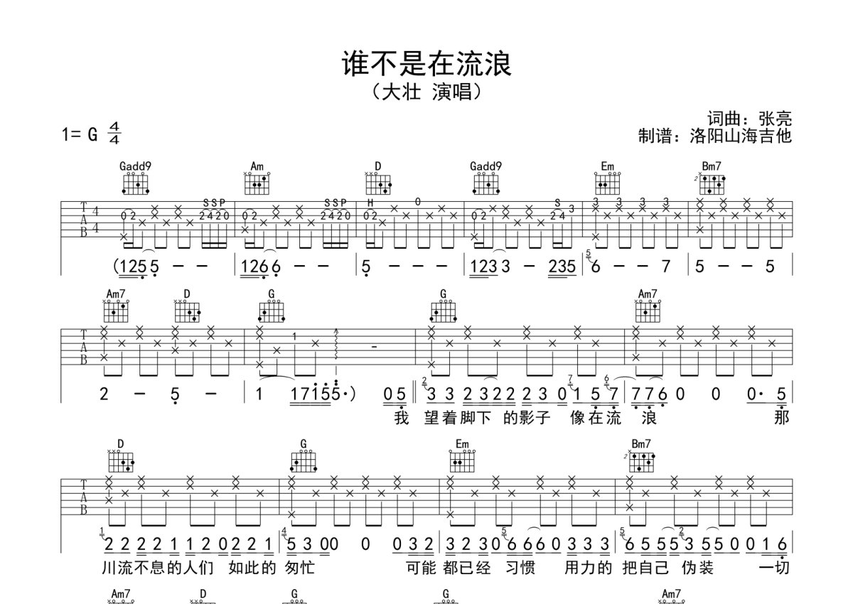 大壮《谁不是在流浪》吉他谱 - G调弹唱六线谱