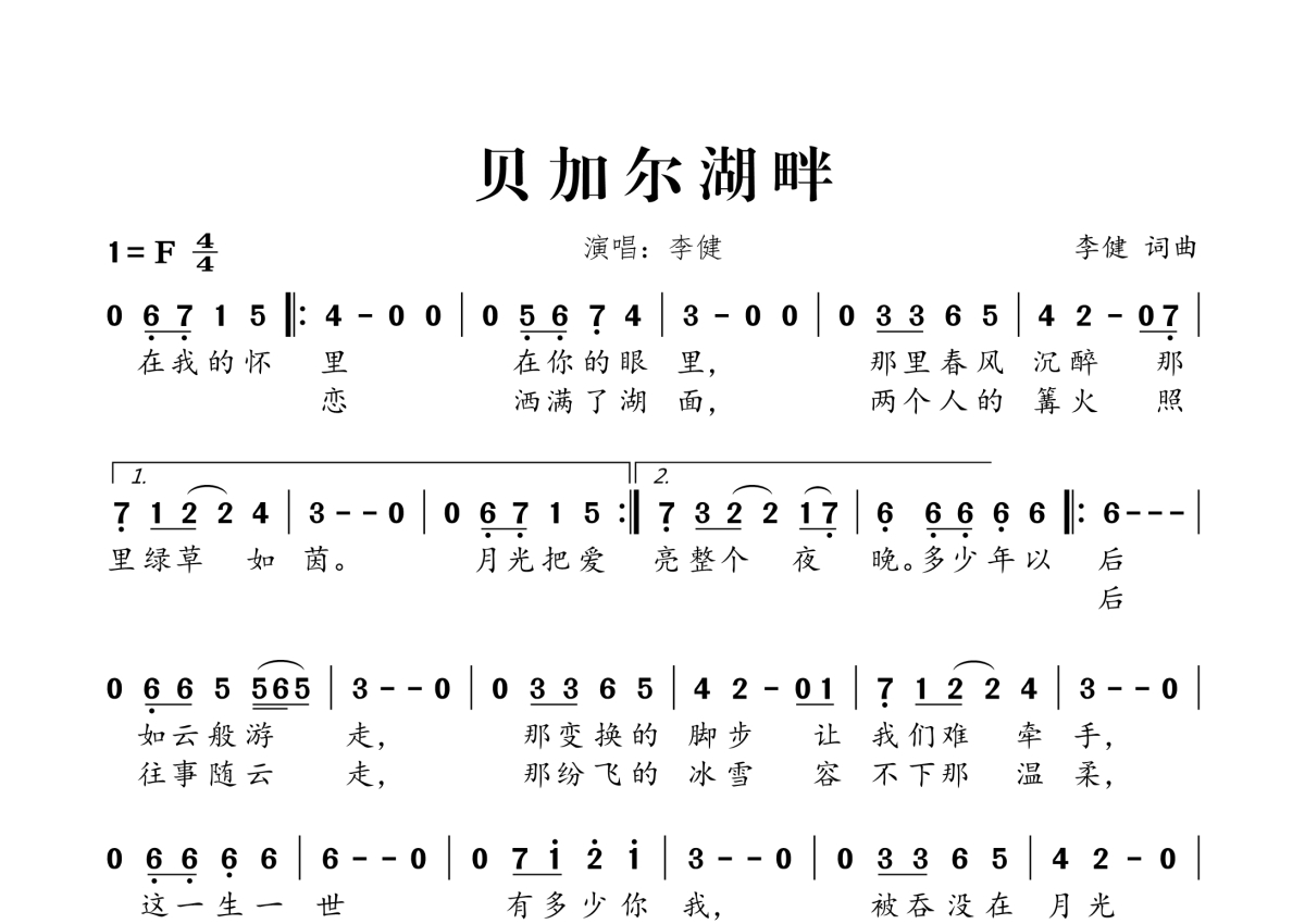 李健《贝加尔湖畔》简谱
