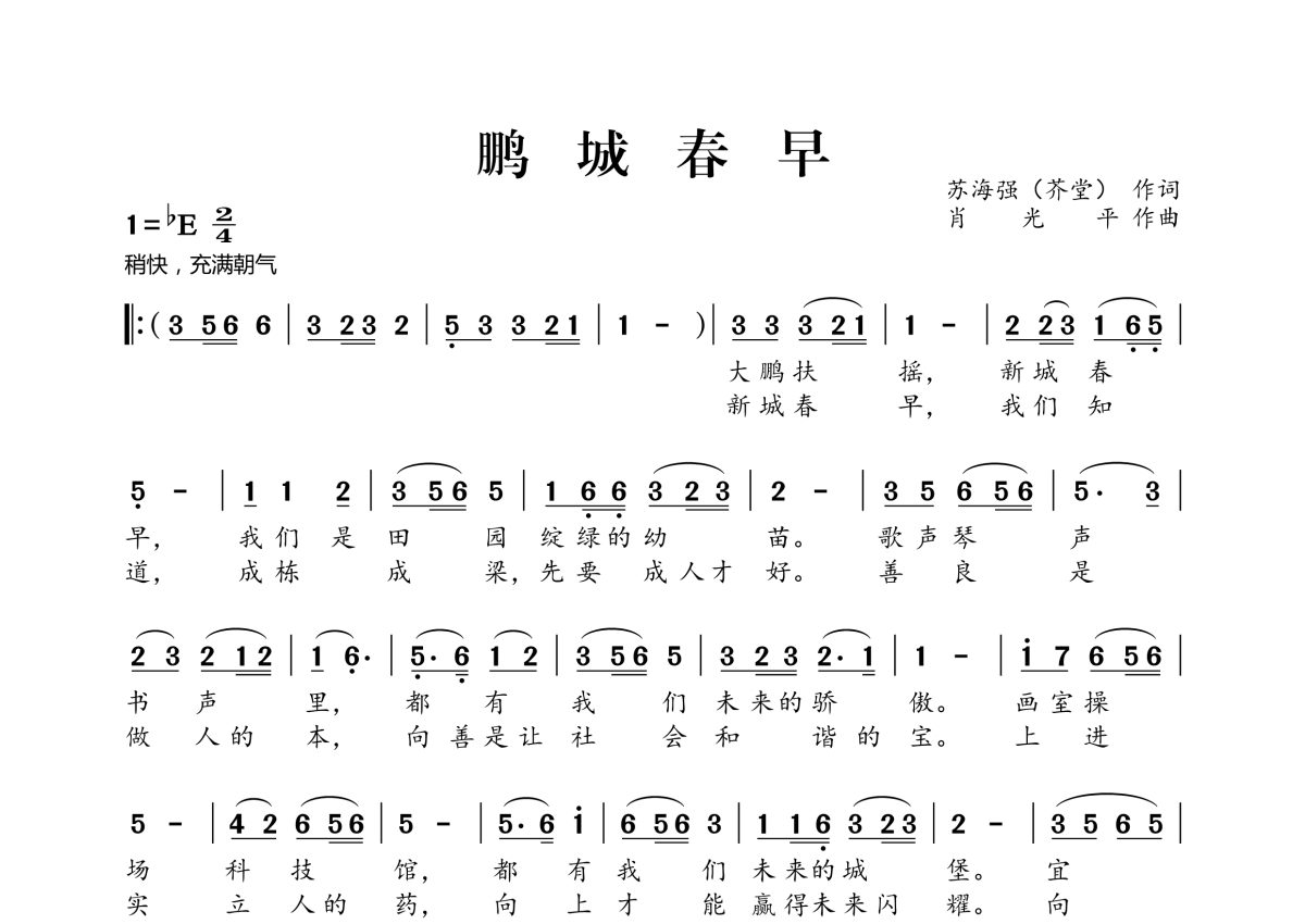《鹏程春早》,拍号为2/4拍,这份简谱共有一张高清图谱,图谱由 @桃李醉春风 编配上传。