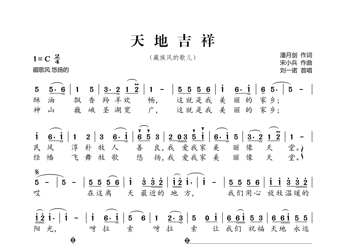 天地吉祥简谱 - 演唱