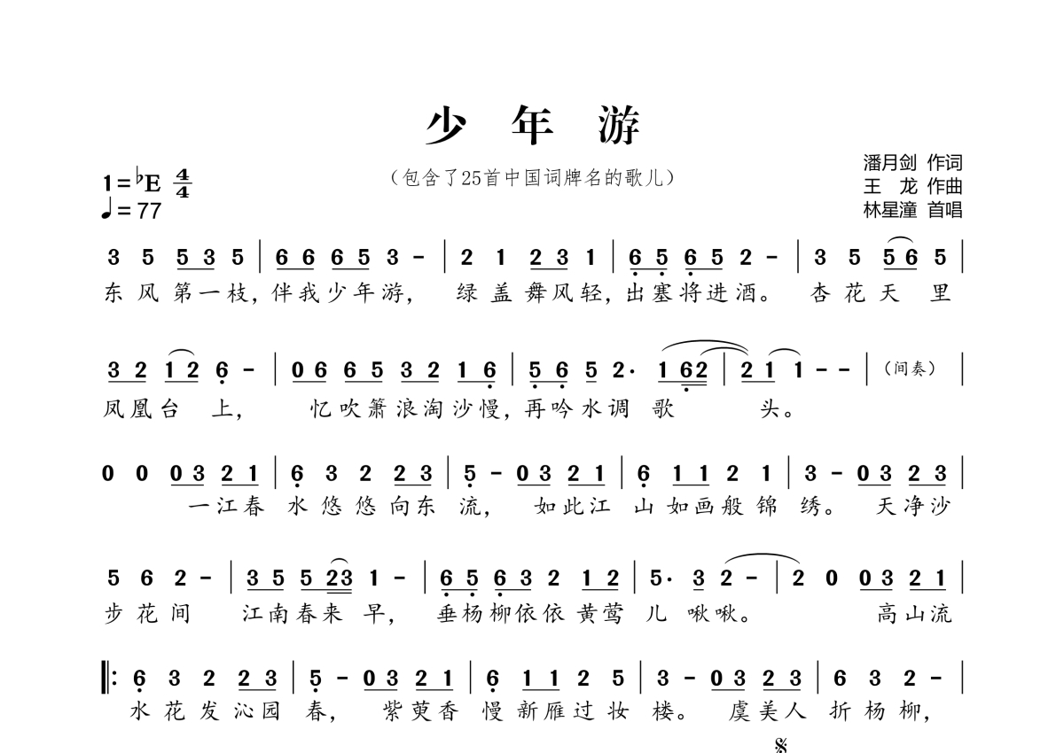 《少年游》,拍号为4/4拍,歌曲速度为每分钟77拍,这份简谱共有一张高清图谱,图谱由 @桃李醉春风 编配上传。