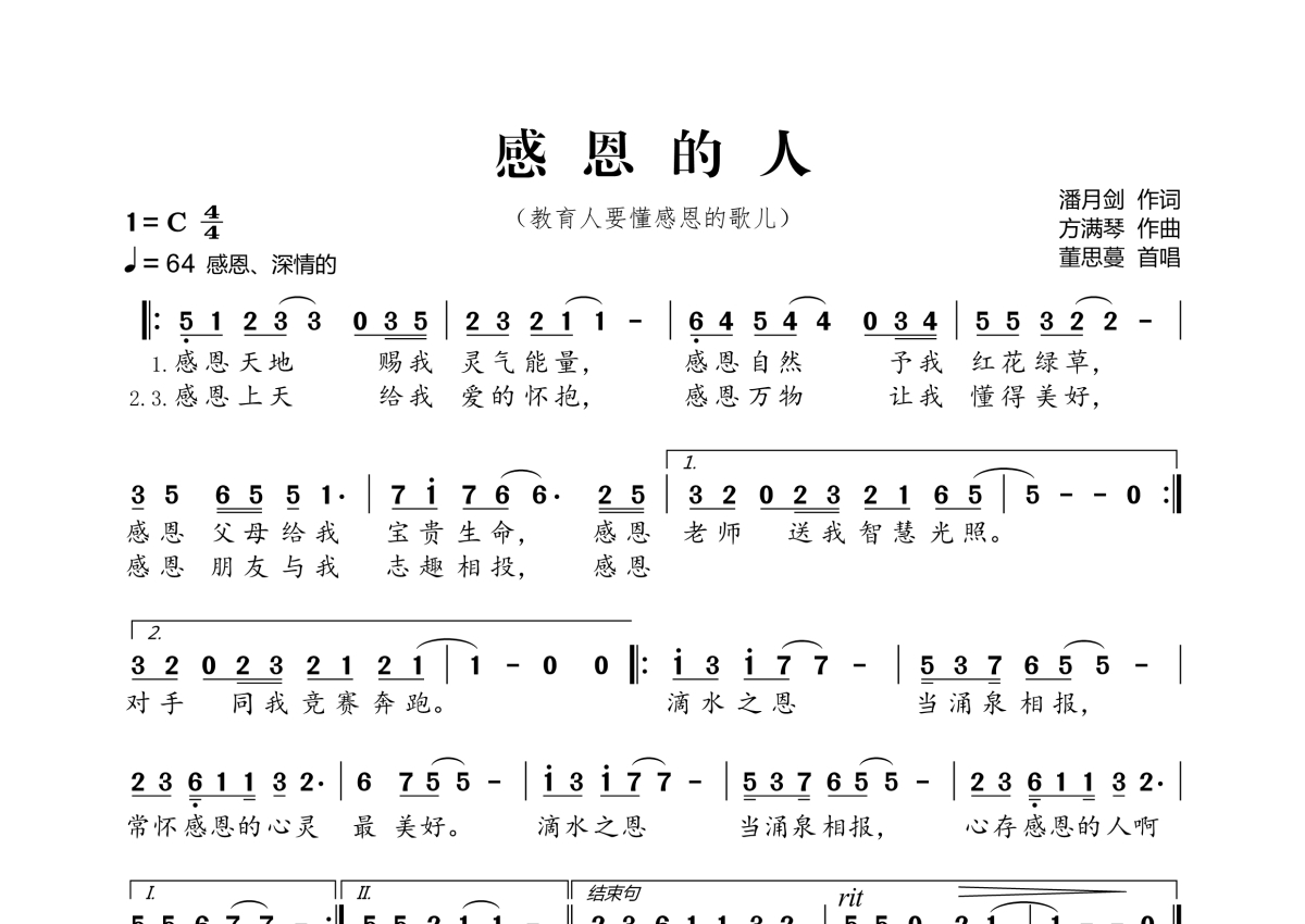 感恩的人简谱 - 演唱