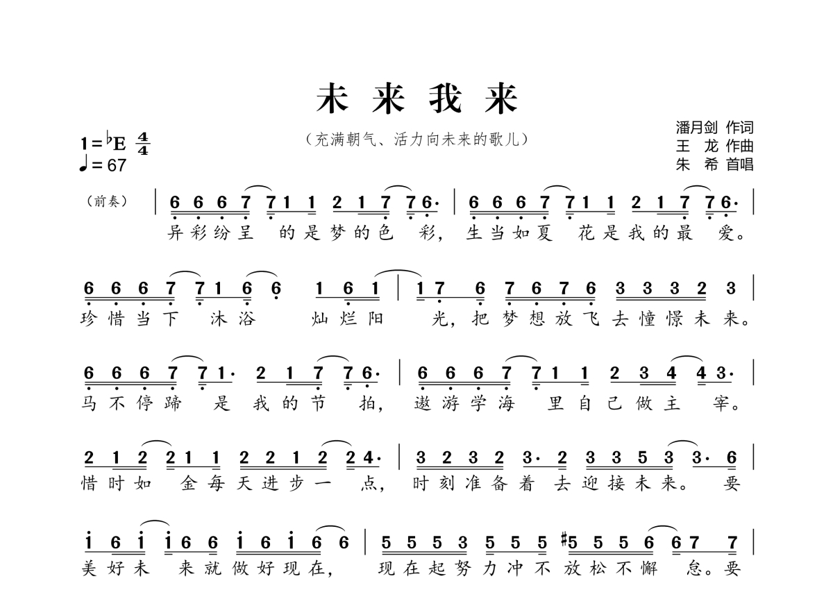 《未来我来》,拍号为4/4拍,歌曲速度为每分钟67拍,这份简谱共有一张高清图谱,图谱由 @桃李醉春风 编配上传。