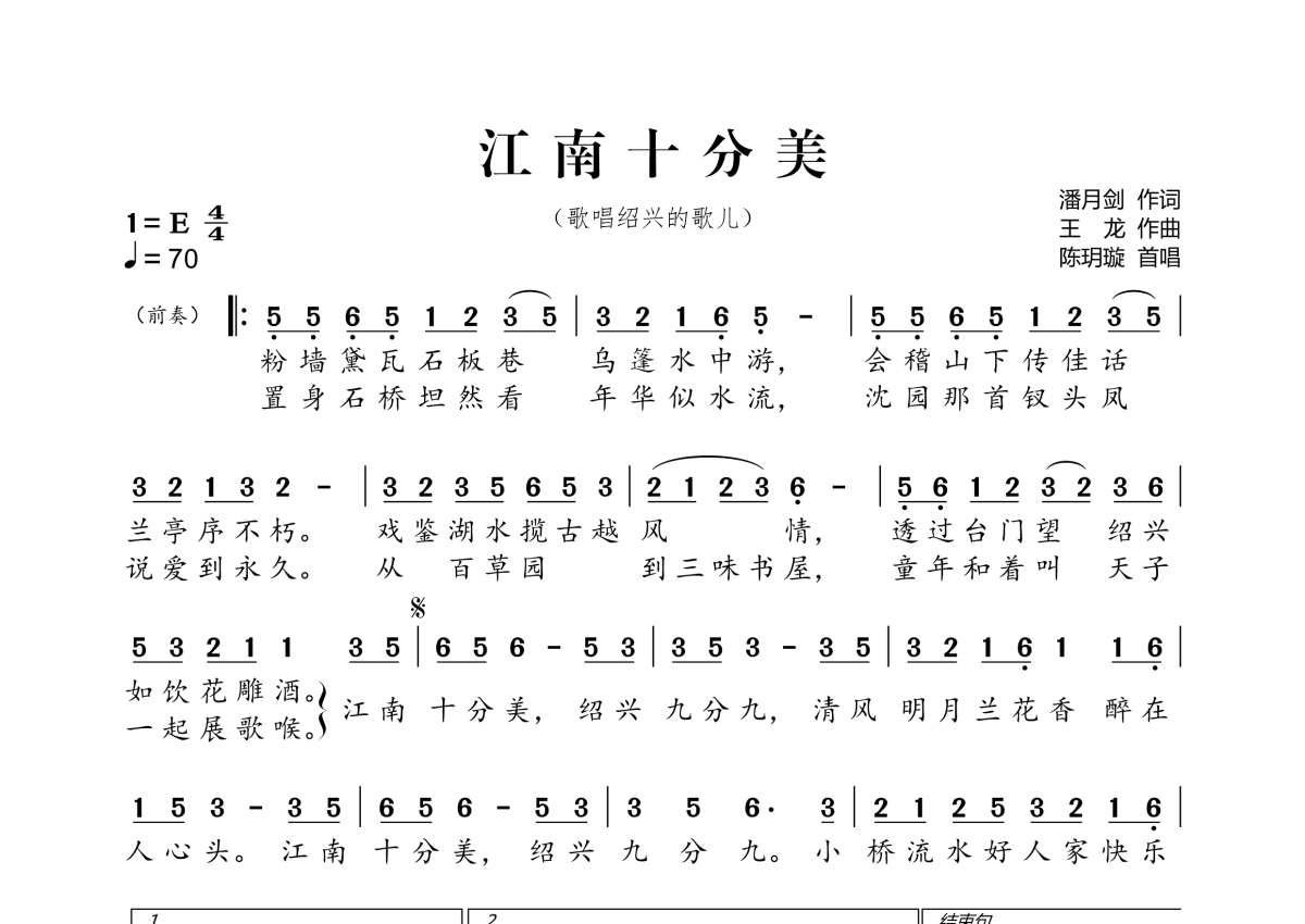 《江南十分美》,拍号为4/4拍,歌曲速度为每分钟70拍,这份简谱共有一张高清图谱,图谱由 @桃李醉春风 编配上传。