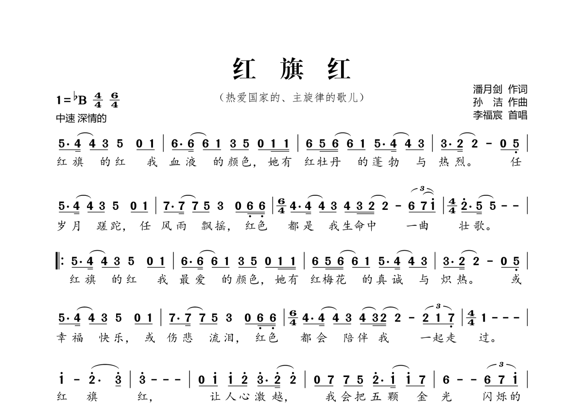 红旗红简谱 - 演唱
