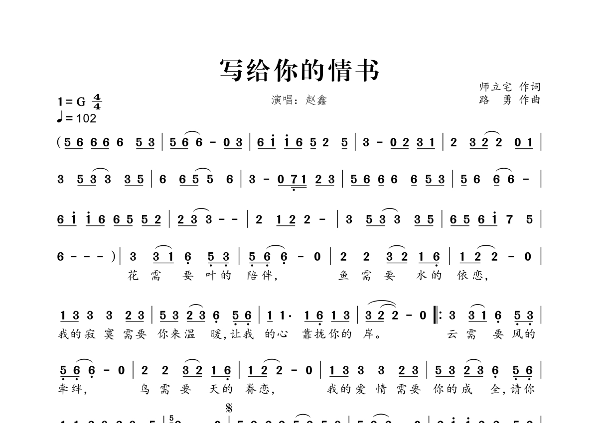赵鑫《写给你的情书》简谱