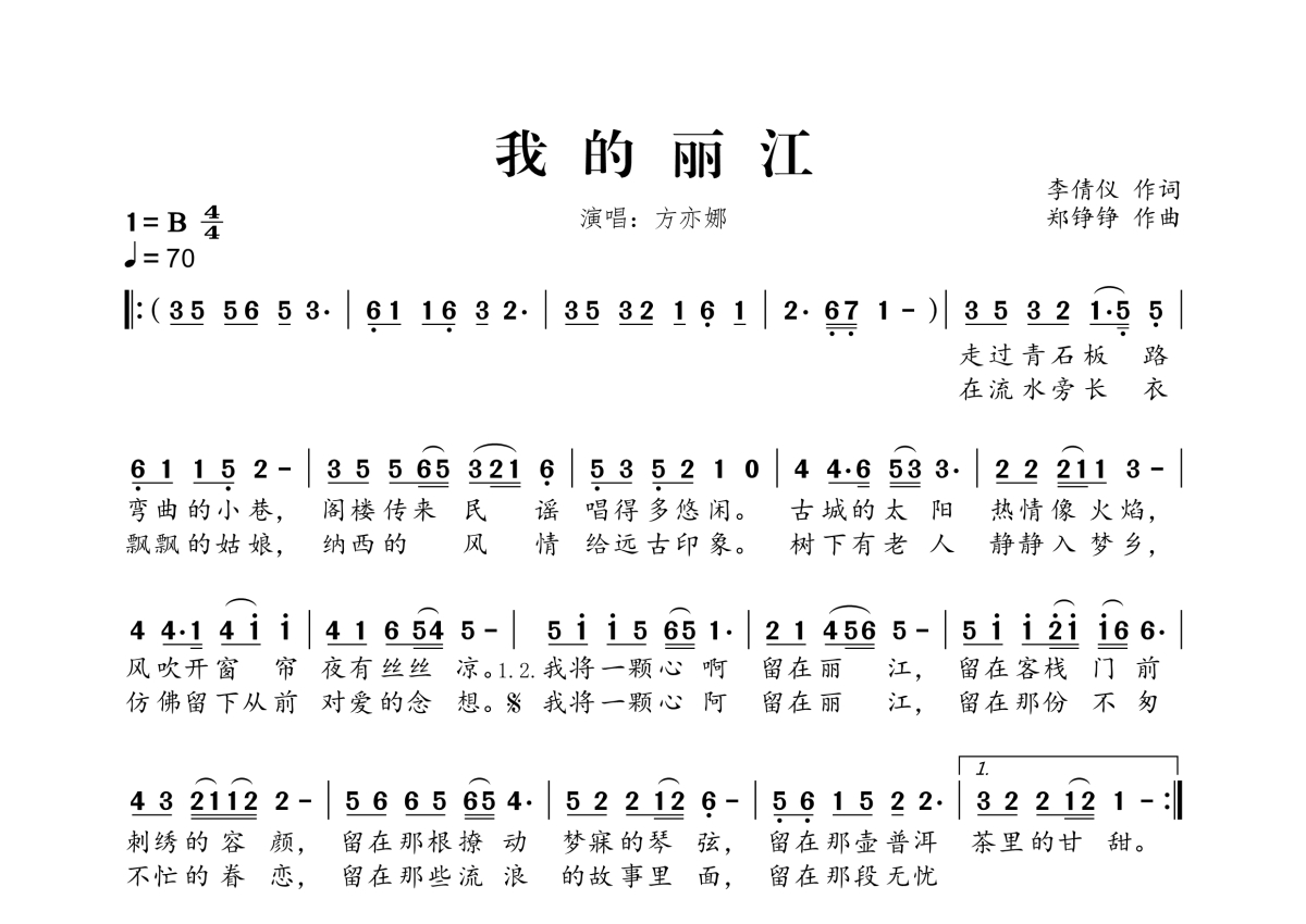 方亦娜《我的丽江》简谱