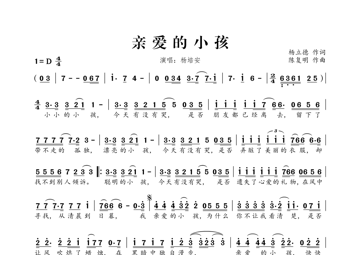 杨培安《亲爱的小孩》简谱