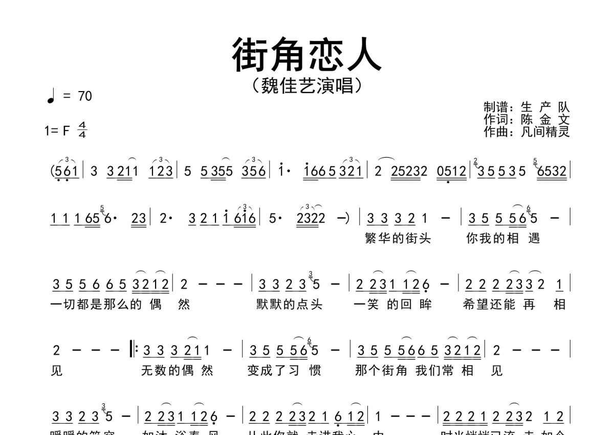 街角恋人简谱 - 魏佳艺演唱 - 原版简谱