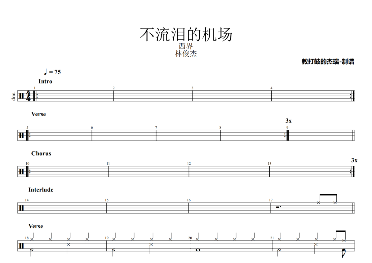 林俊杰《不流泪的机场》架子鼓谱