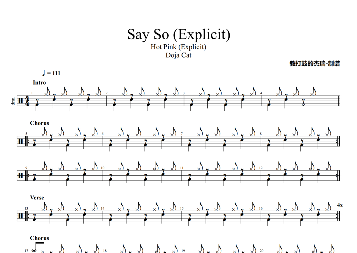 Doja Cat《Say So (Explicit)》架子鼓谱