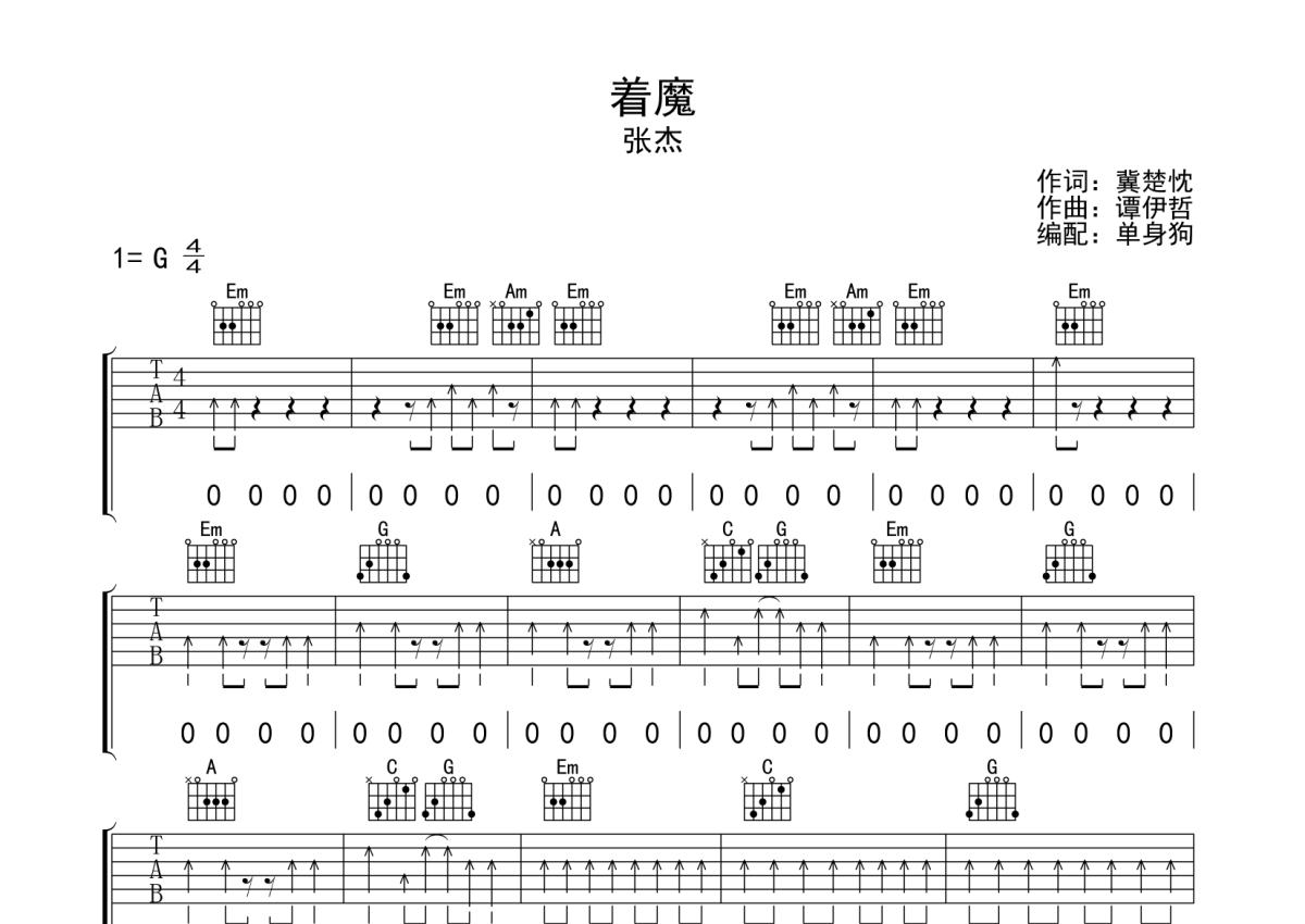 张杰《着魔》吉他谱 - G调弹唱六线谱