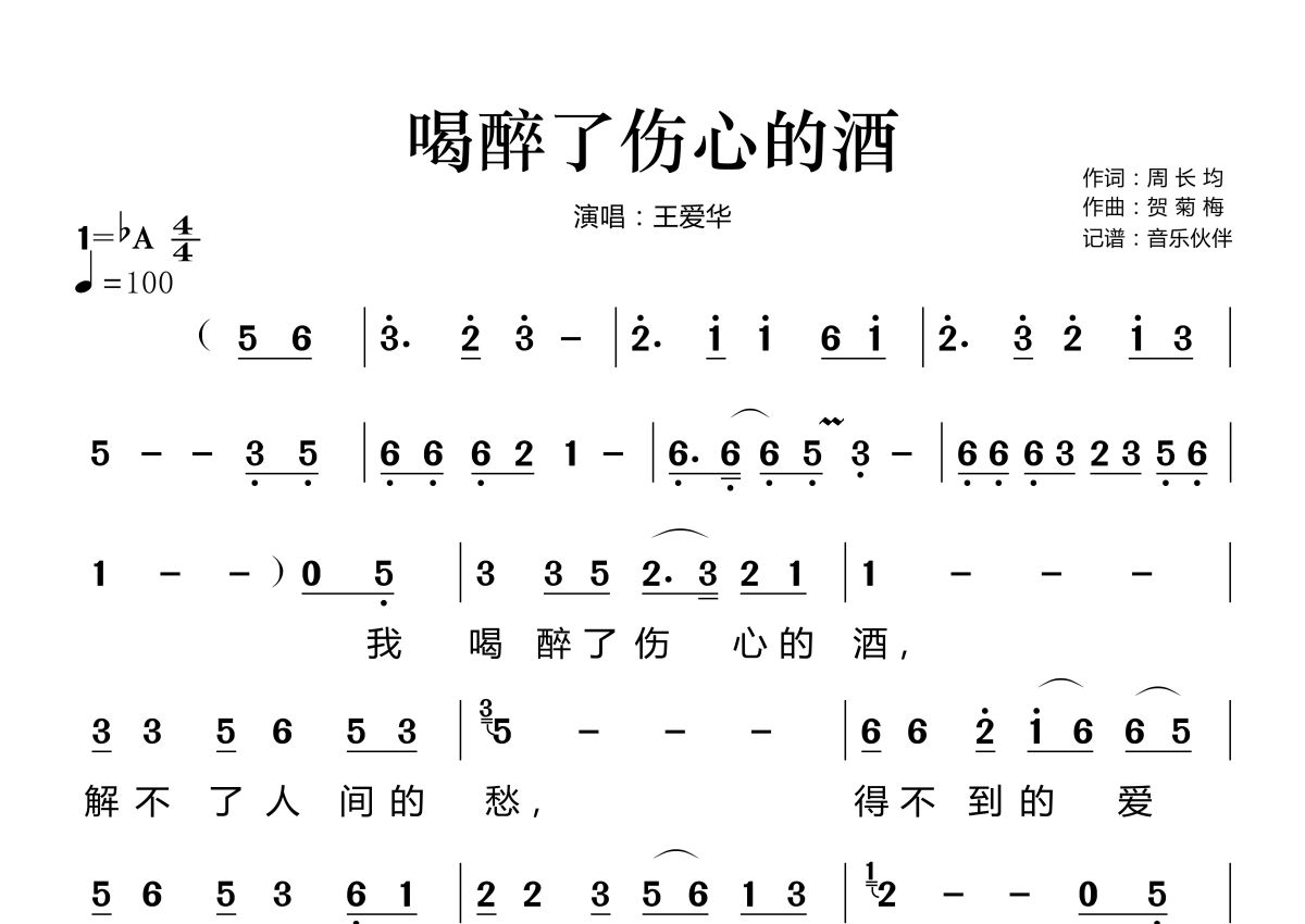 喝醉了伤心的酒简谱 - 王爱华演唱
