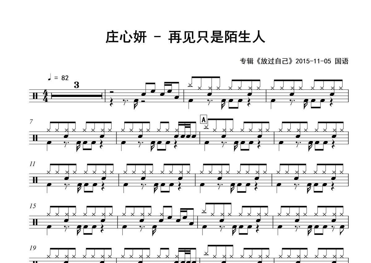 庄心妍《再见只是陌生人》架子鼓谱 - 专辑版
