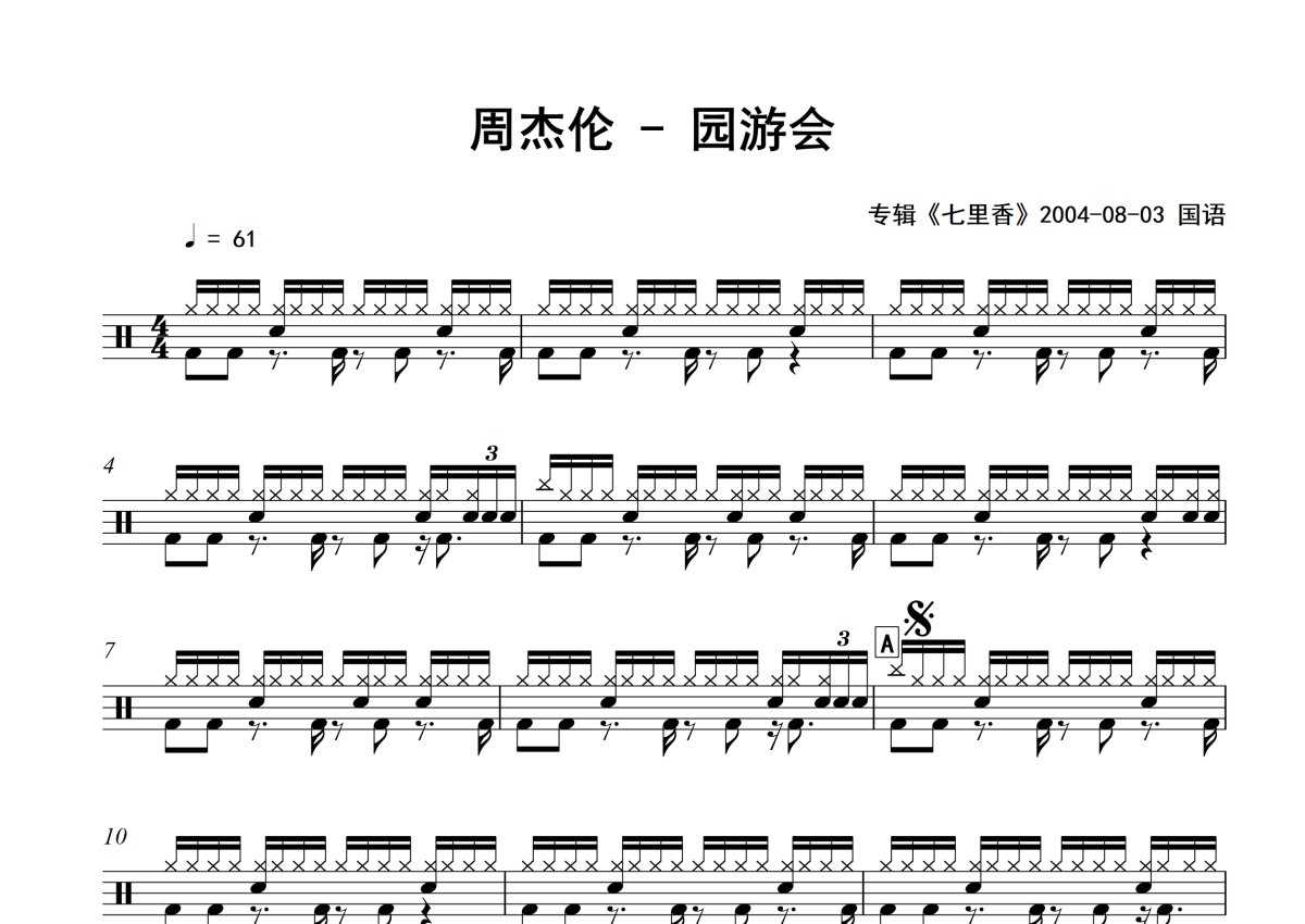 周杰伦《园游会》架子鼓谱 - 专辑版