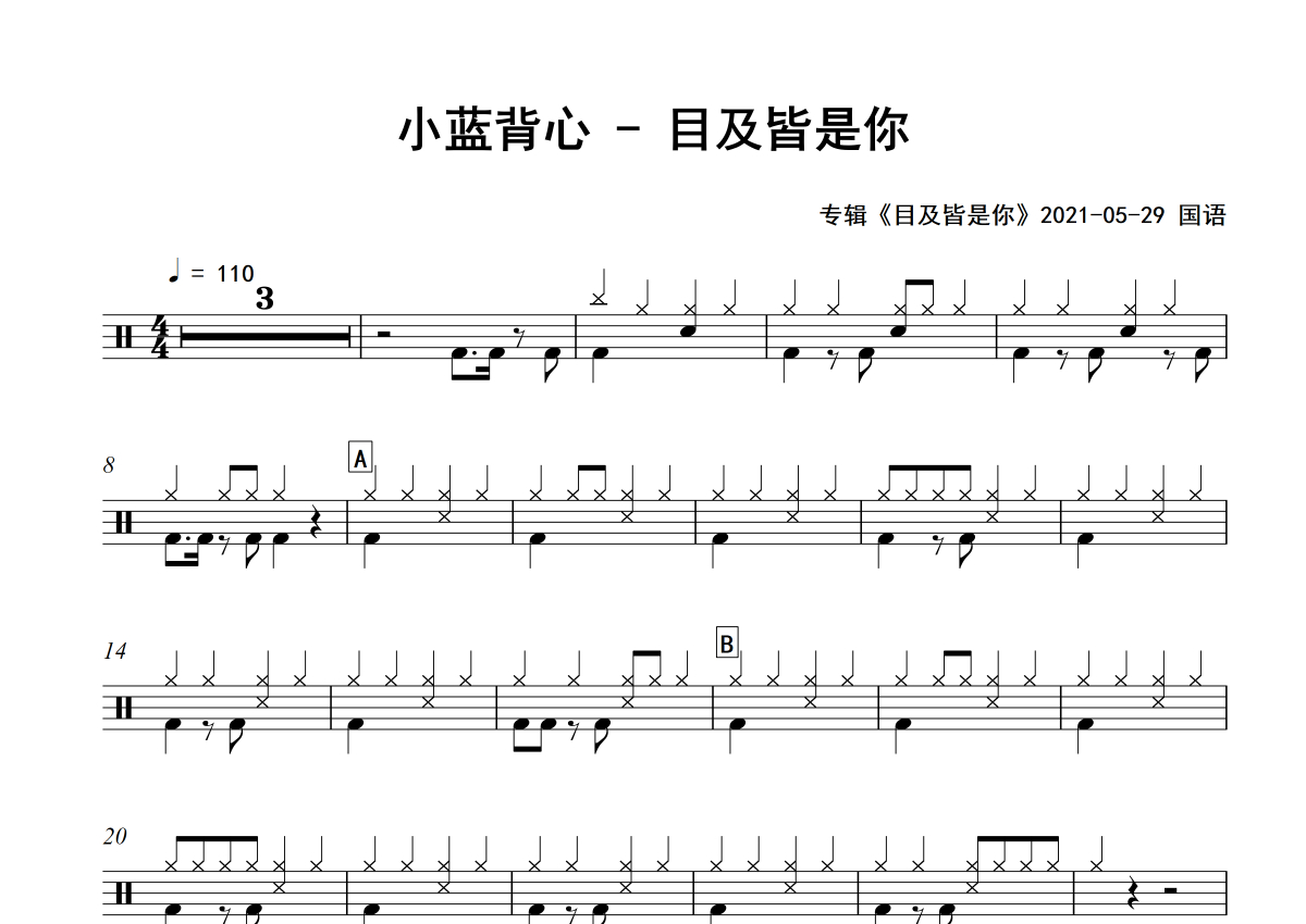 小蓝背心《目及皆是你》架子鼓谱 - 专辑版