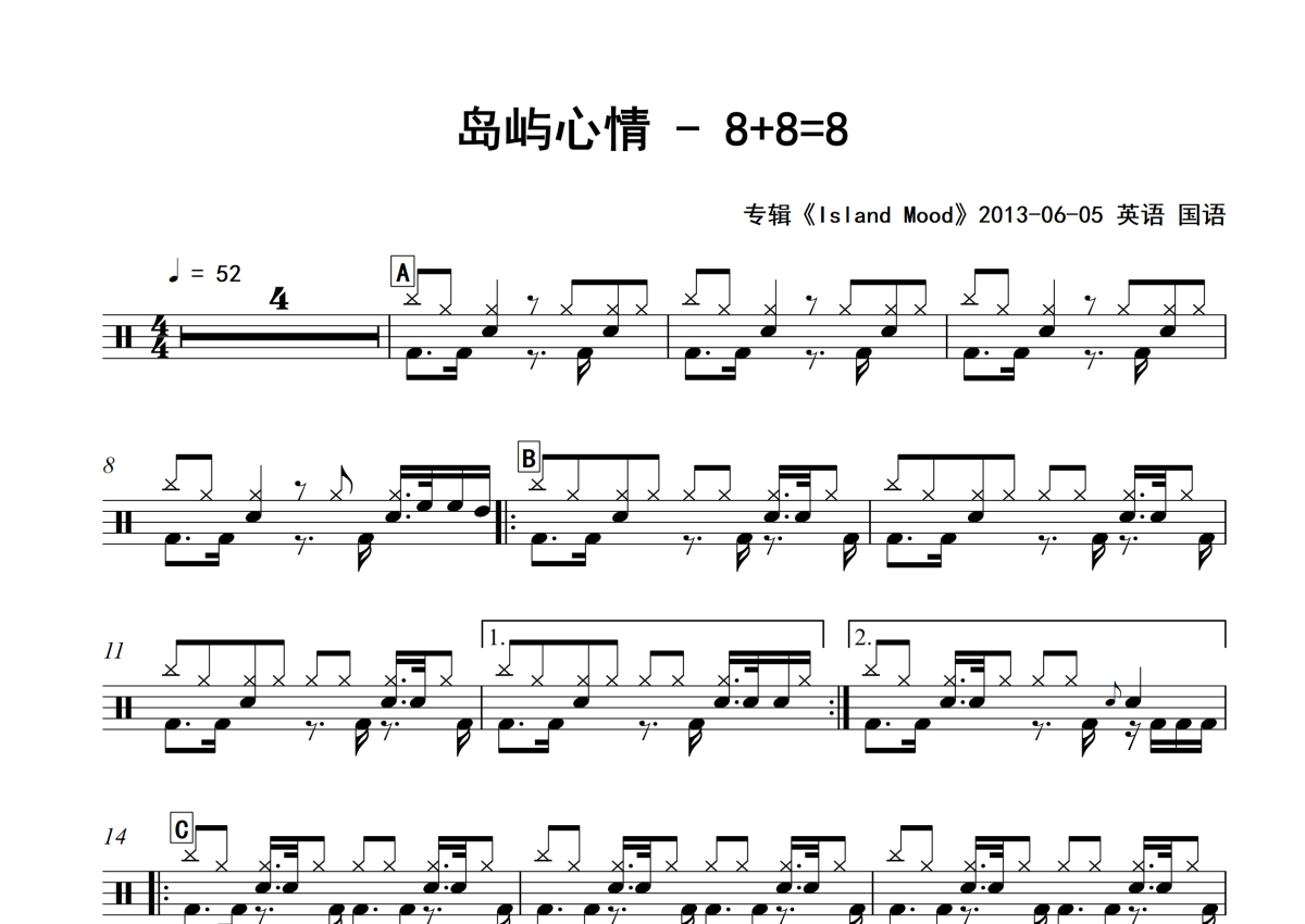 岛屿心情《8+8=8》架子鼓谱 - 专辑版
