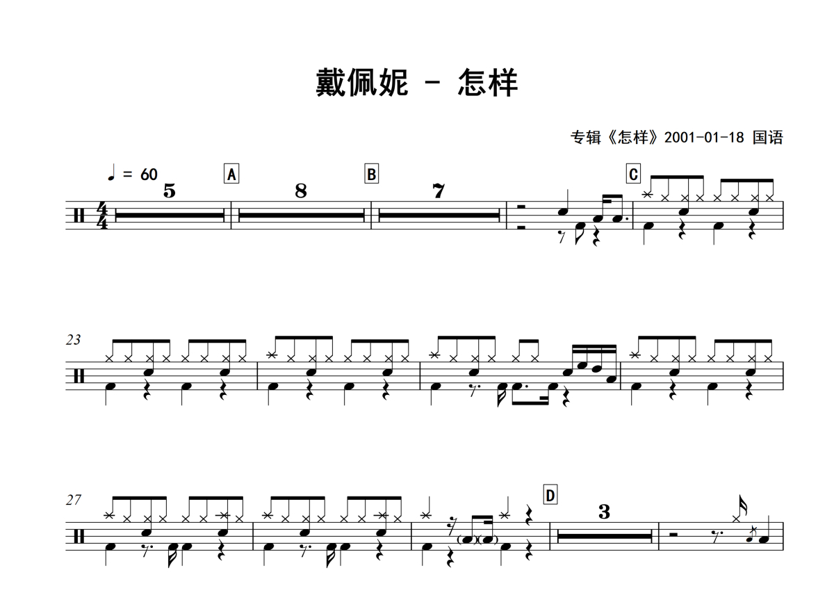 戴佩妮《怎样》架子鼓谱 - 专辑版