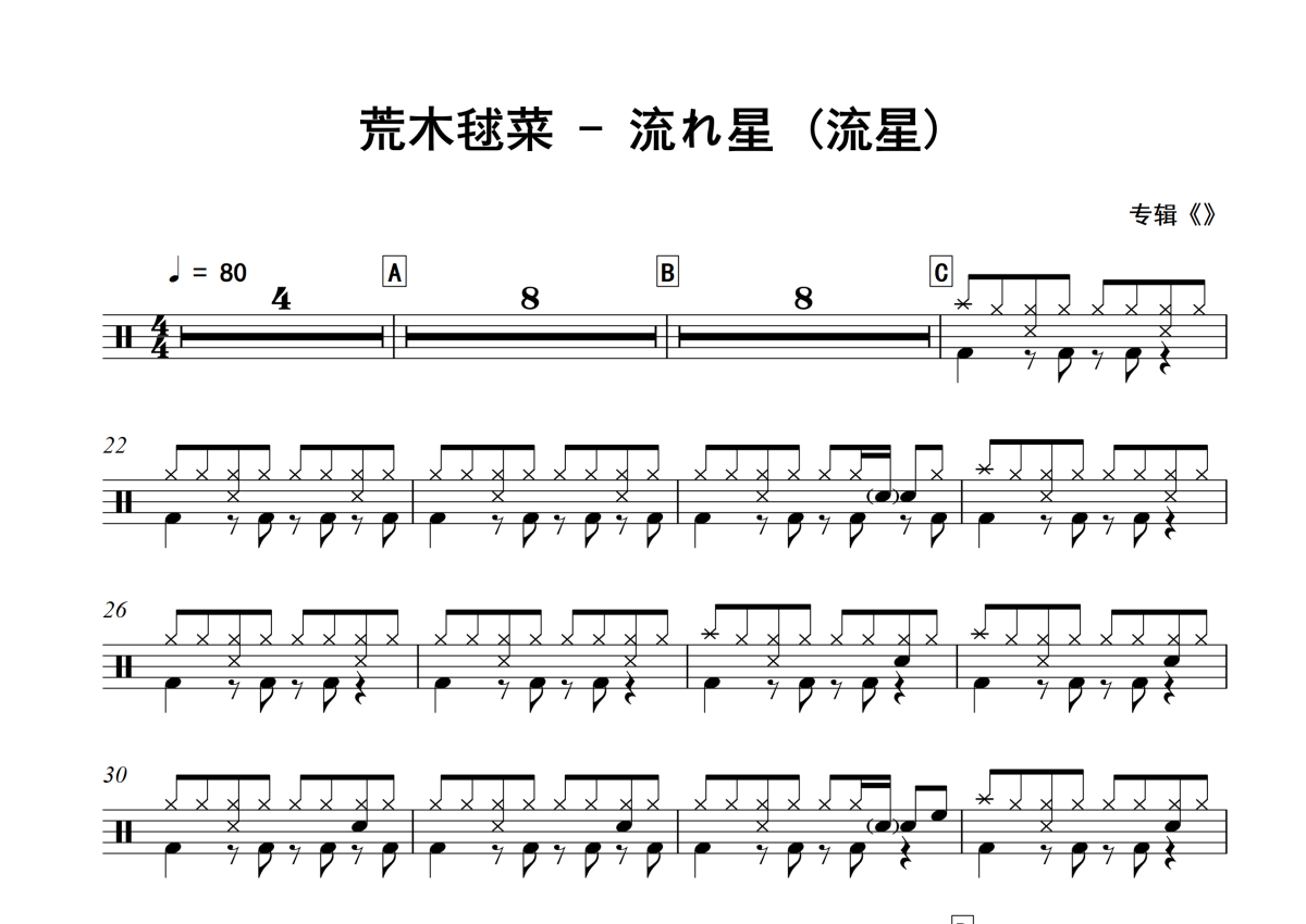 荒木毬菜《流れ星 (流星)》架子鼓谱