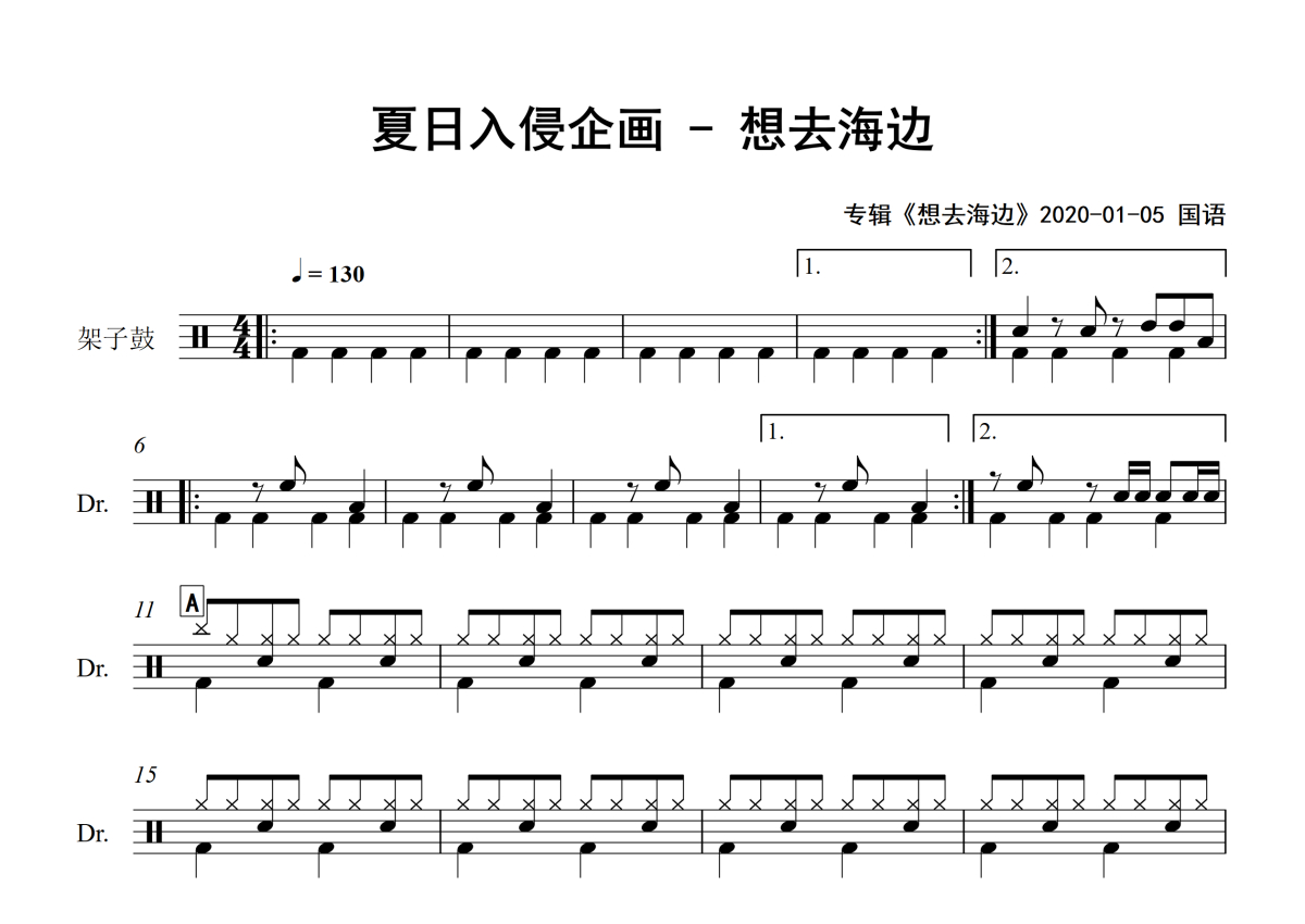 夏日入侵企画《想去海边》架子鼓谱 - 专辑版