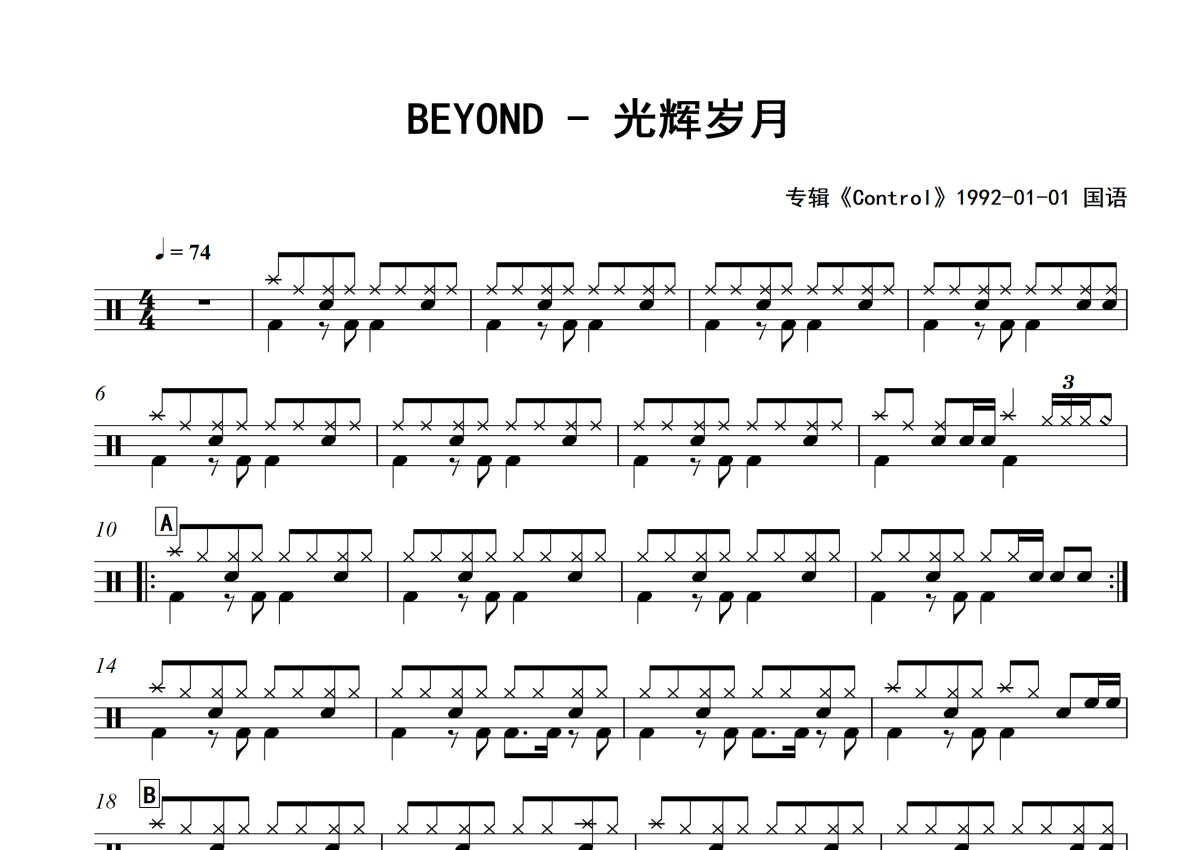 BEYOND《光辉岁月》架子鼓谱 - 专辑版