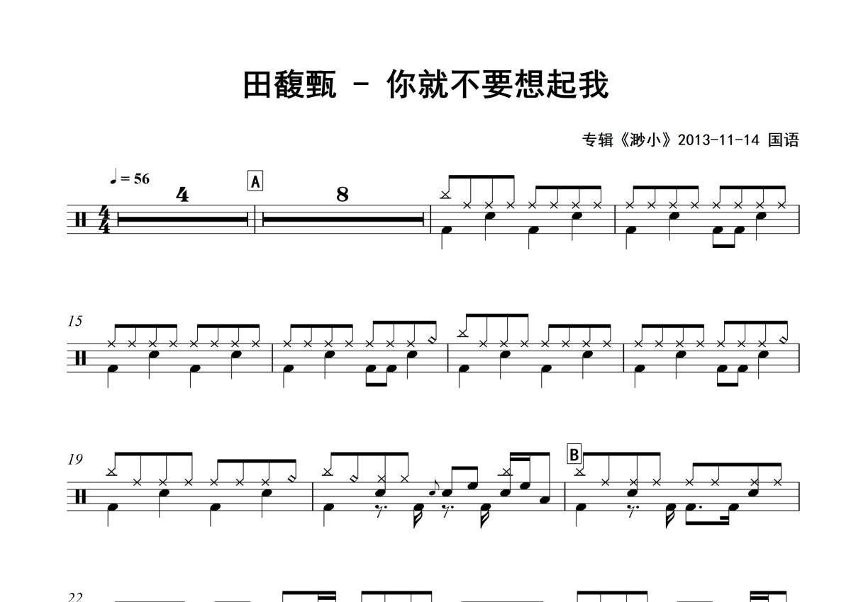 田馥甄《你就不要想起我》架子鼓谱 - 专辑版