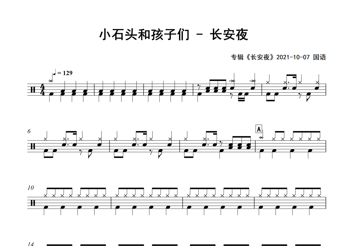 小石头和孩子们《长安夜》架子鼓谱 - 专辑版
