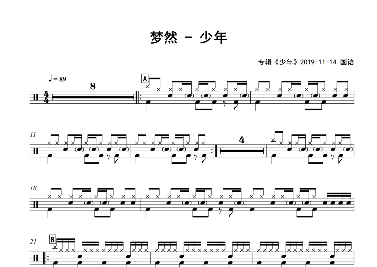 梦然《少年》架子鼓谱 - 专辑版