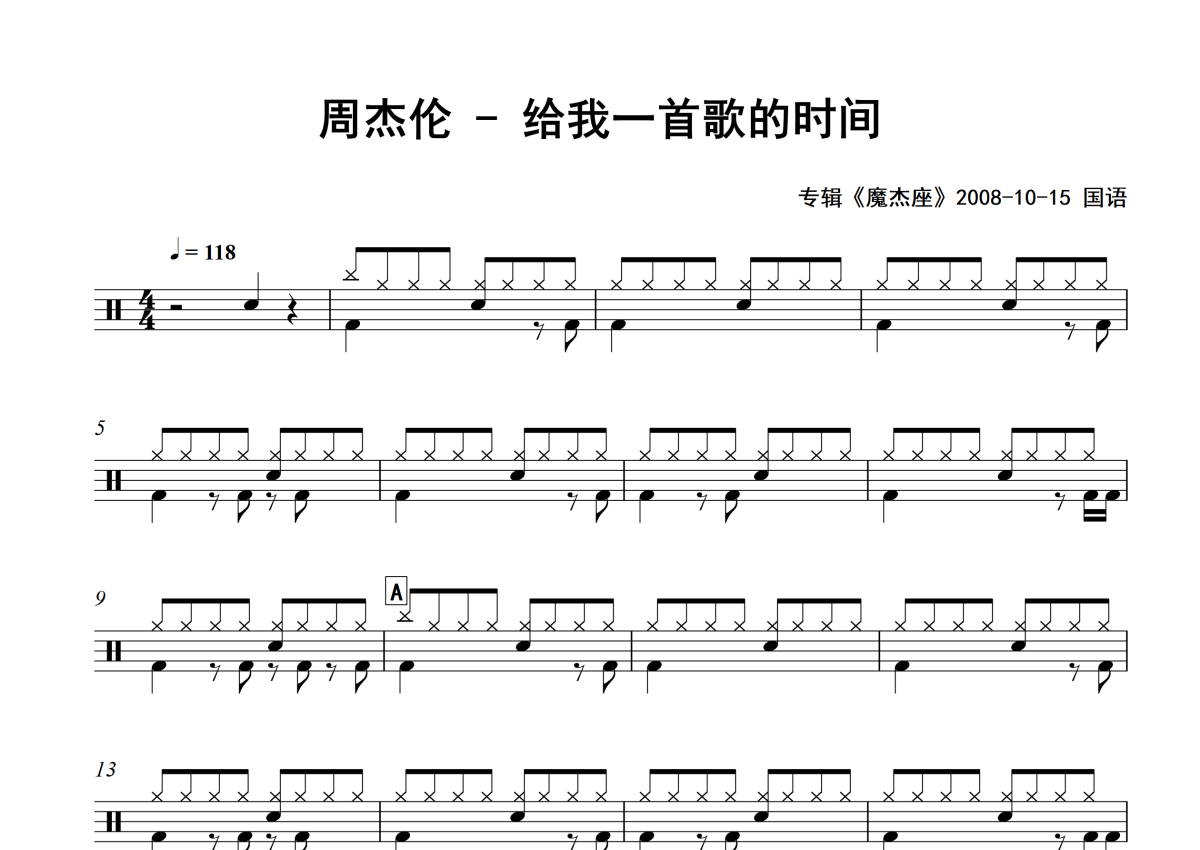 周杰伦《给我一首歌的时间》架子鼓谱 - 专辑版