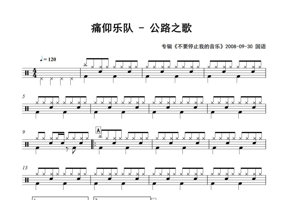 痛仰乐队《公路之歌》架子鼓谱 - 专辑版