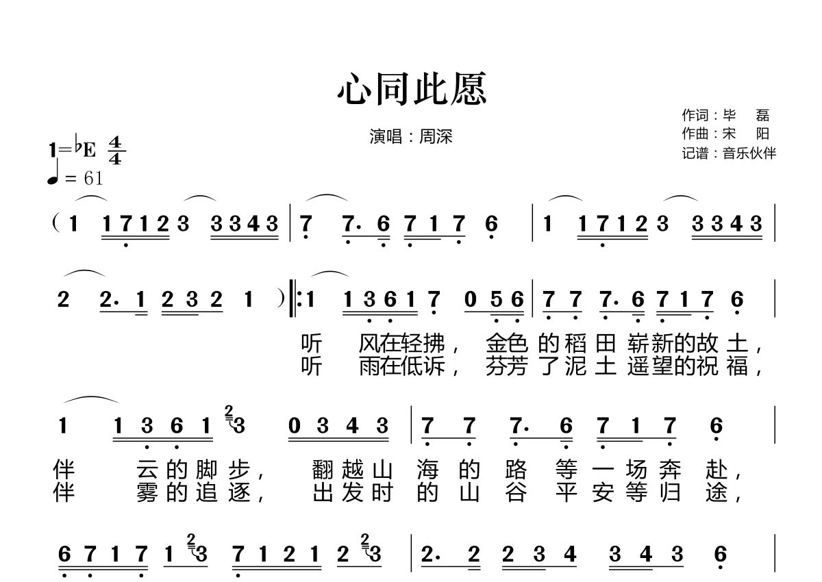 《心同此愿》是周深演唱的一首歌曲,这份简谱共有两张高清图谱,图谱由 @音乐伙伴 编配上传。
