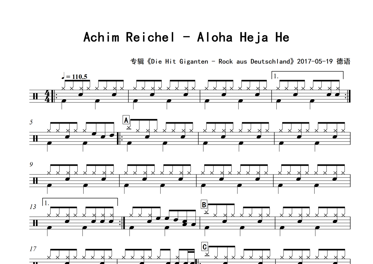 Achim Reichel《Aloha Heja He》架子鼓谱 - 专辑版