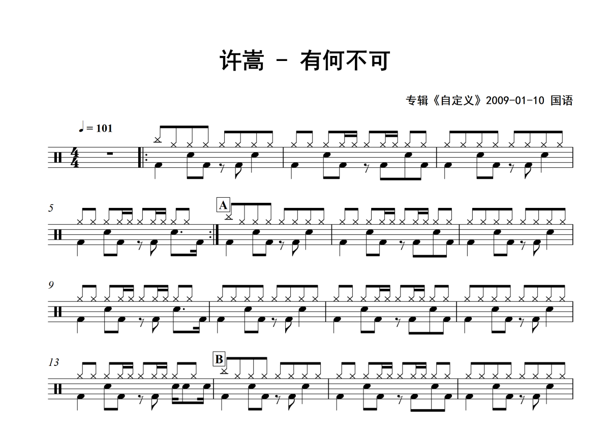 许嵩《有何不可》架子鼓谱 - 专辑版