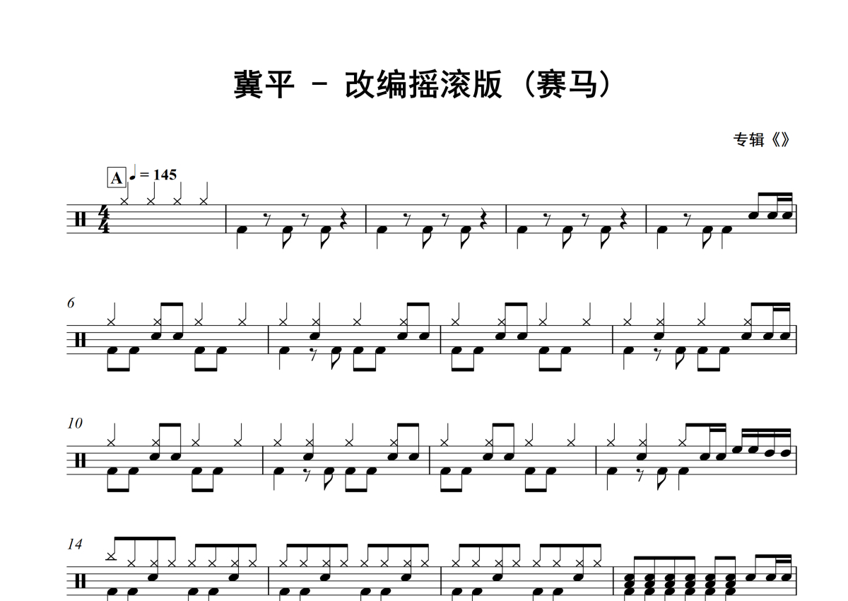 冀平《改编摇滚版 (赛马)》架子鼓谱 - 专辑版