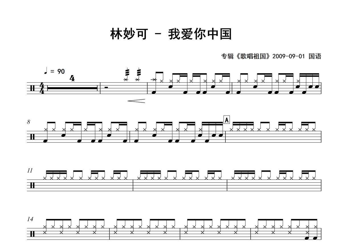 林妙可《我爱你中国》架子鼓谱 - 专辑版